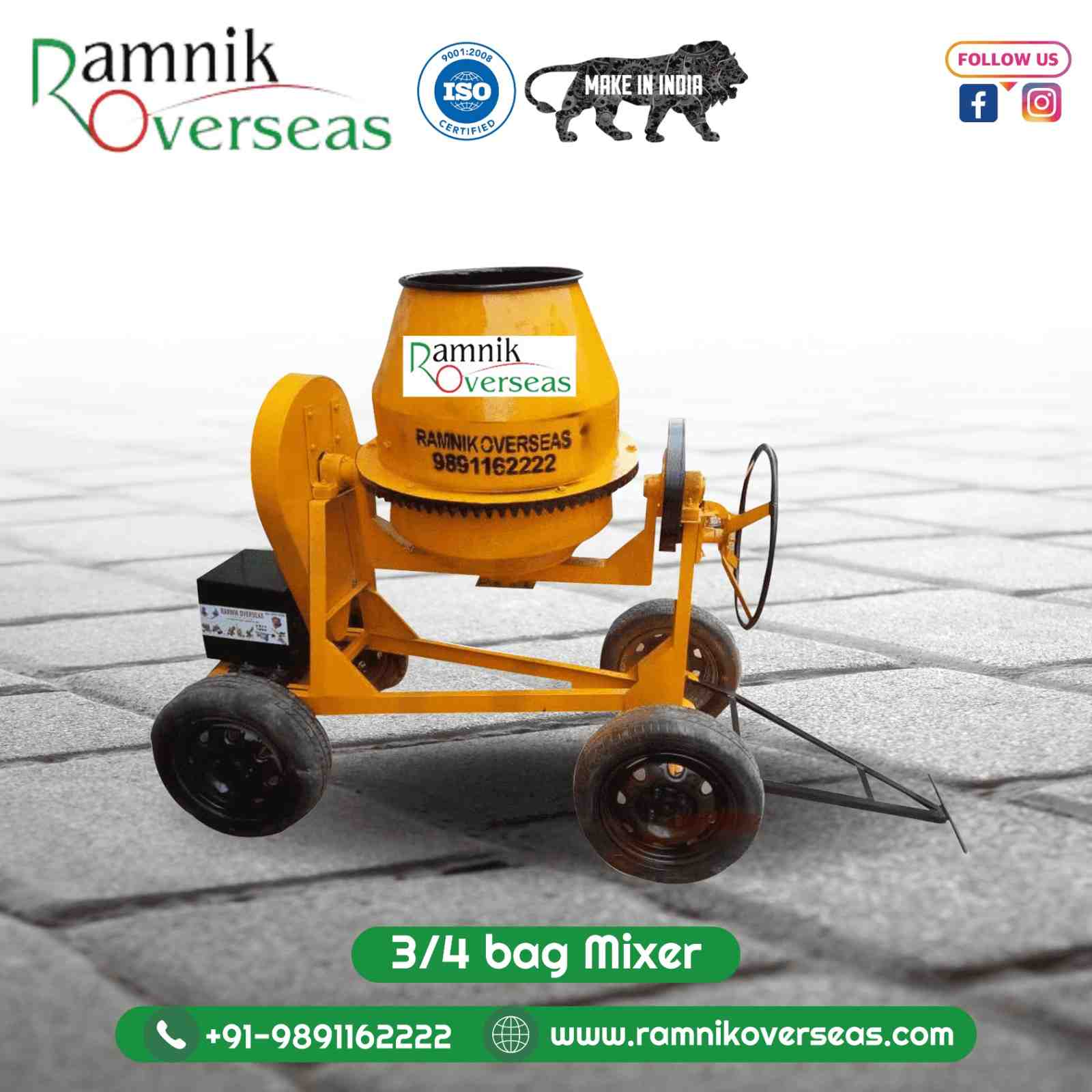 Time is money in the construction industry, and the 3/4 Bag Mixer understands this well. Its efficient design and powerful motor enable rapid mixing, significantly reducing the time required to prepare materials. With this machine at your disposal, you can complete projects faster, meet deadlines with ease, and take on additional work. The time savings provided by the 3/4 Bag Mixer translate into increased productivity and profitability for contractors and builders.