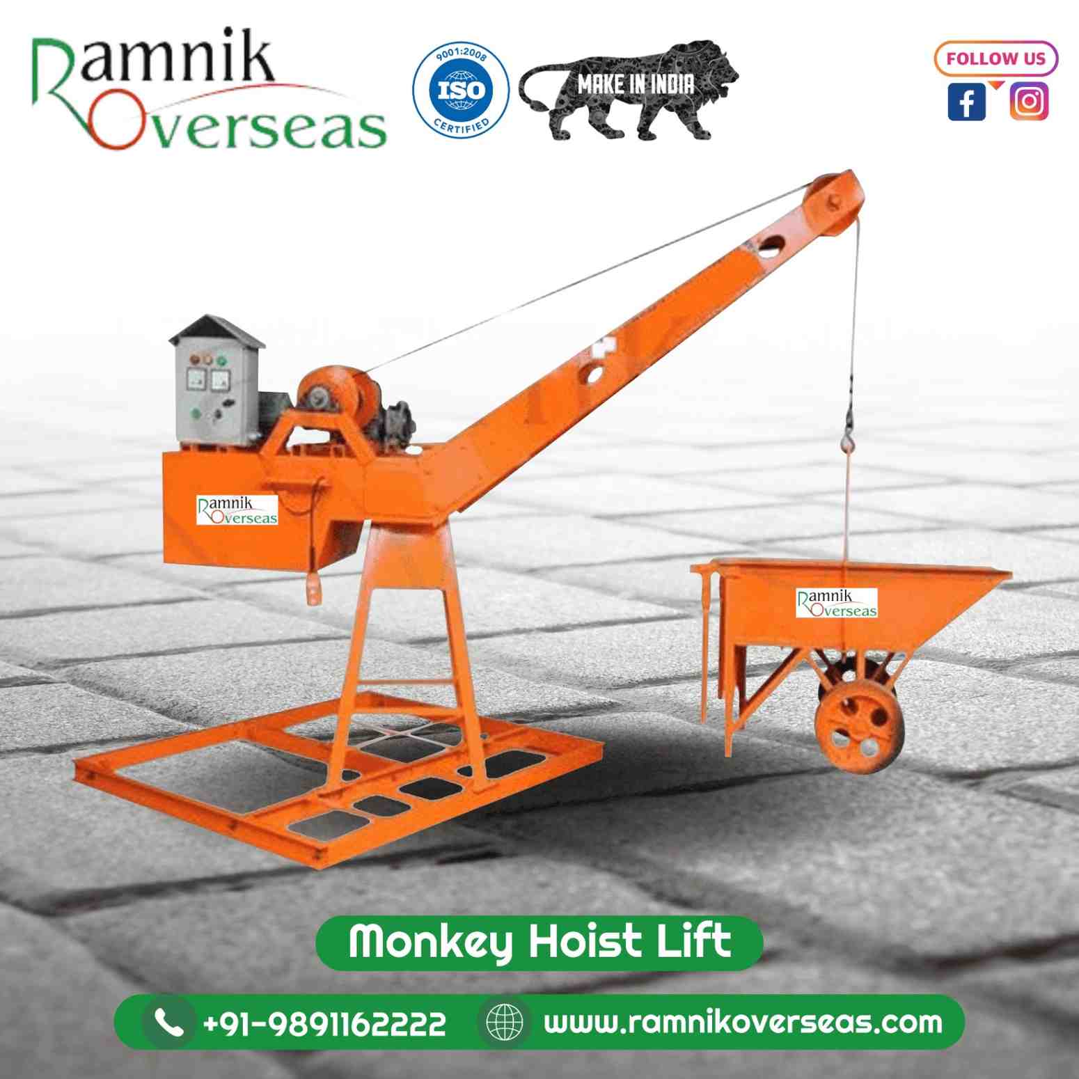 The Monkey Hoist Lift is a versatile and reliable piece of equipment designed to facilitate vertical transportation of materials on construction sites. It is a robust lifting mechanism that allows construction workers to move heavy loads, such as bricks, concrete blocks, and construction materials, to different levels of a building or structure with ease. With its powerful motor and sturdy construction, the Monkey Hoist Lift significantly reduces manual labor and expedites the construction process.